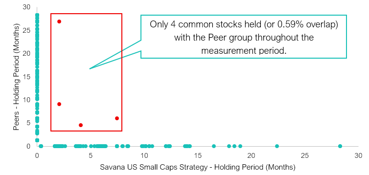 Savana’s algorithmic strategy, uninfluenced by prevailing human sentiment, means we are uniquely positioned to capitalise on these opportunities – as demonstrated by <1% portfolio overlap with US peers (see Figure 1 above). This edge is maximised by maintaining higher conviction across fewer stocks, while amplifying our precision through shorter average holding periods (see Figure 4).