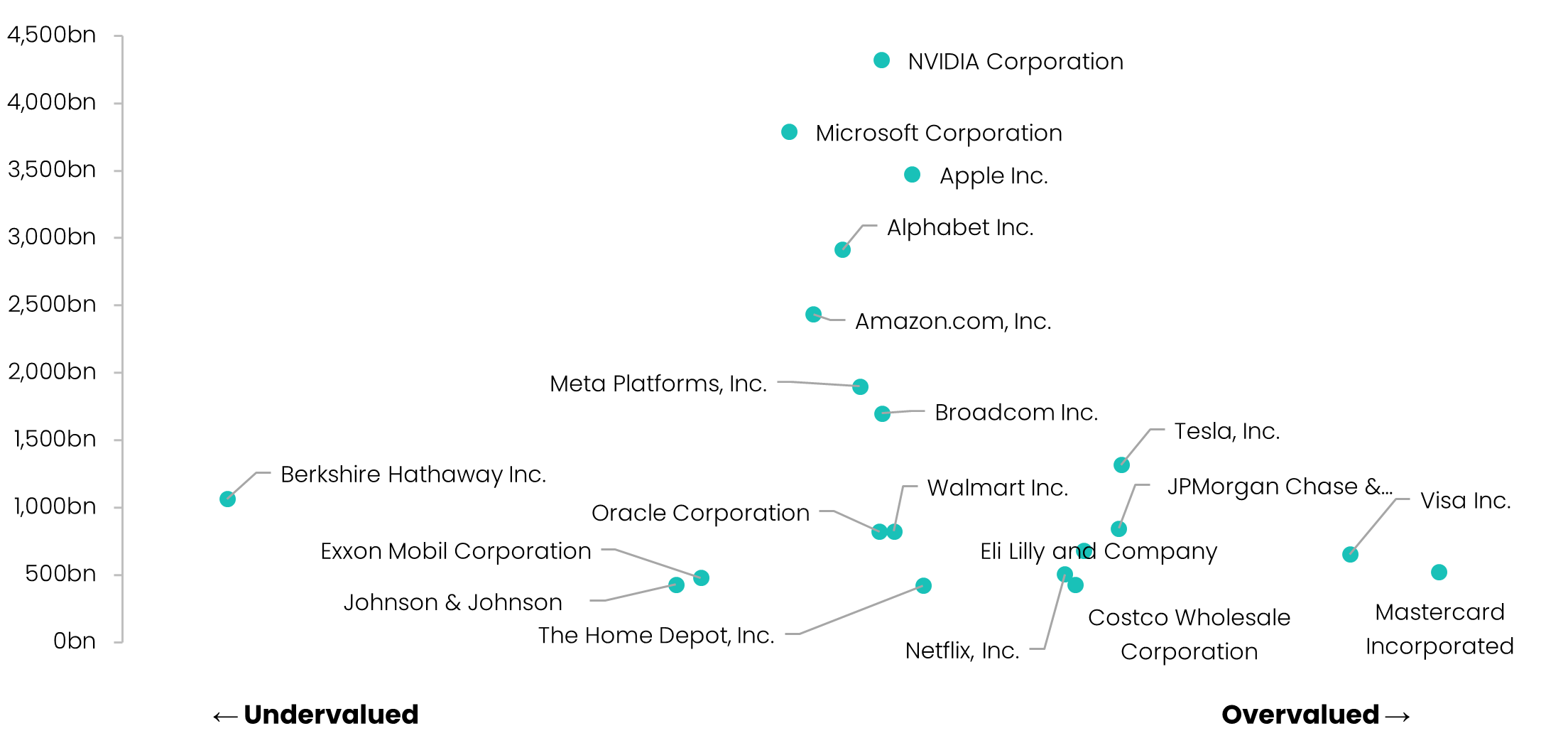 But every so often, for a bit of fun, we turn the lens upward. How do the market’s heavyweights stack up when put under Savana’s valuation radar? Which giants look stretched, and which may still offer value? What insights can be drawn? Let’s find out!