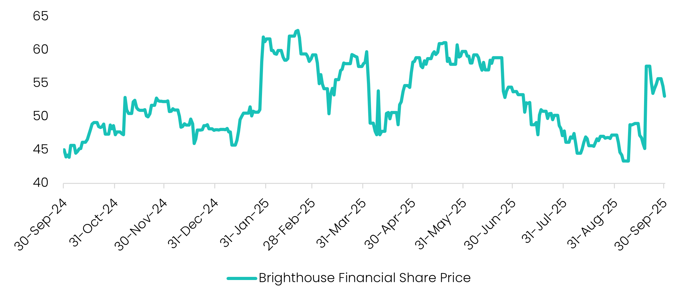 Brighthouse originally put itself up for sale in January this year. Private equities including Apollo Global Management and Carlyle Group are reported to have come and gone in the bidding process. On the 9th of September, Aquarian Holdings were reported to be in advanced talks to acquire Brighthouse “at a significant premium.” On the 22nd of September, a potential offer of US$65-70 per share emerged, representing a whopping 50-60% on the pre-rumour (8-September) valuation. The company is now trading at ~US$55 per share.